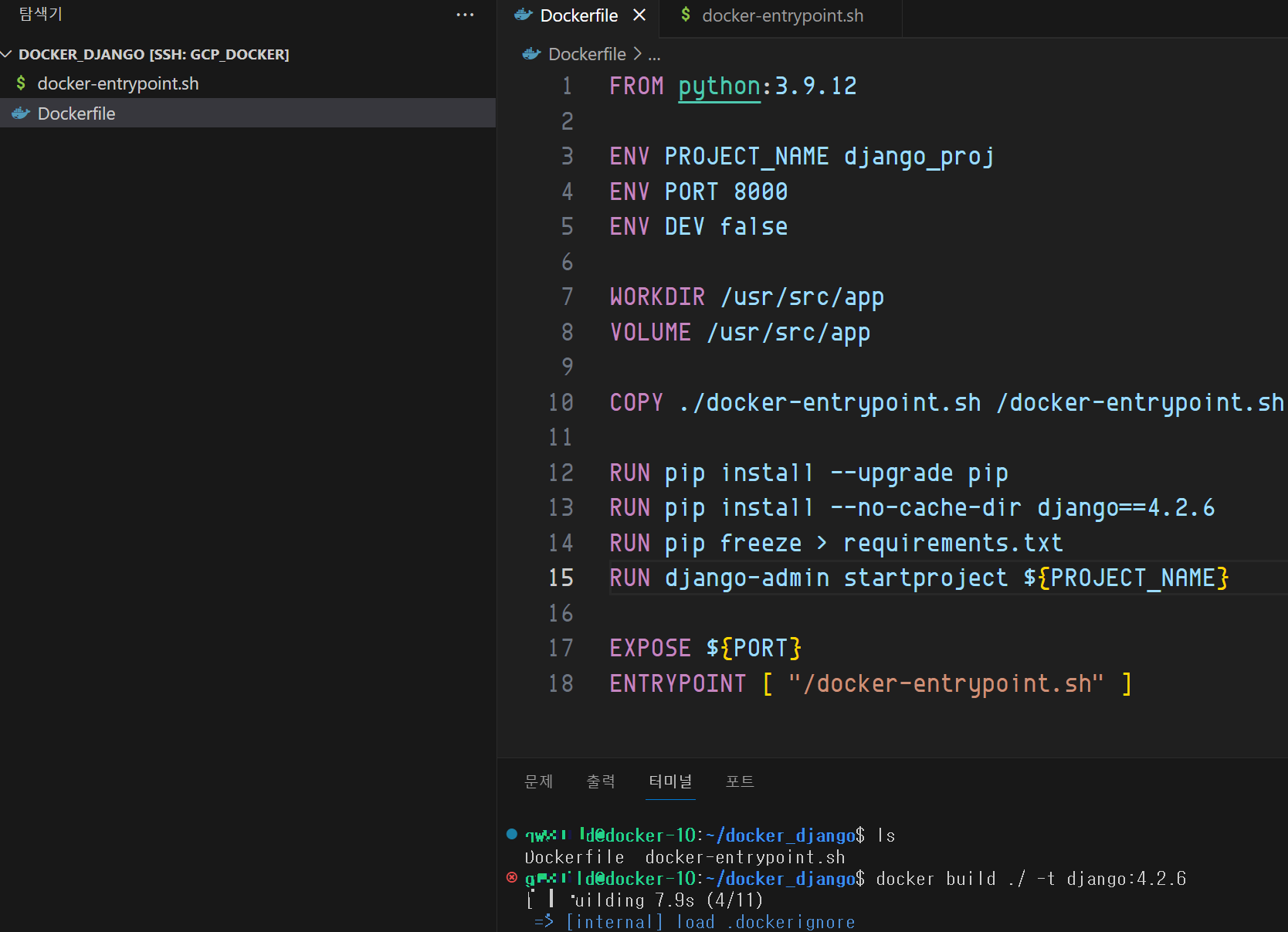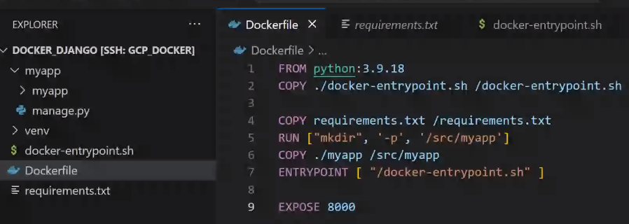 - database 이름은 docker_django로 하자