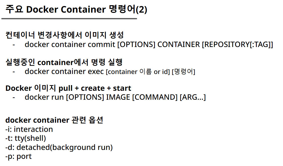 - RUN : 이미지를 만들기 위해 컨테이너 내부에서 명령어 실행