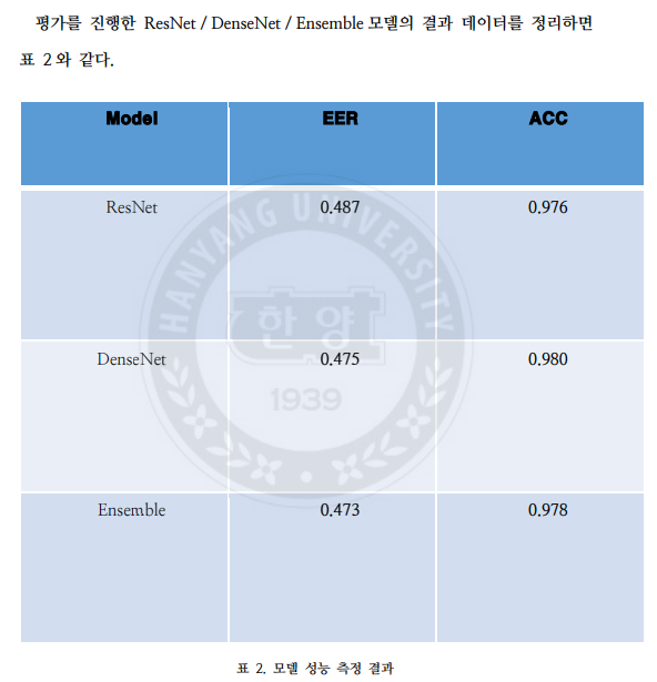 장중부(2022), '앙상블 모델을 활용한 화자인식 정확도 향상', 한양대학교 공학대학원, 석사 학위 논문
