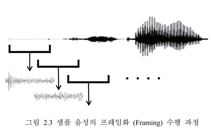프레임화 과정은 윈도우를 겹쳐서 이동하며 수행되고 얻은 짧은 음성 신호를 하나의 프레임으로 간주,
