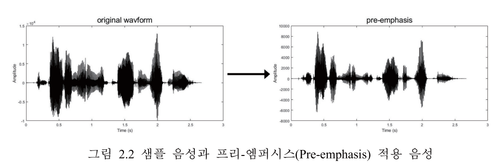사람의 말소리에는 고주파보다 저주파 에너지가 더 많이 포함돼 상대적으로 고주파 성분이 적음. 고주파 에너지를 강화해 음성 신호의 에너지가 전체 주파수 영역에 고르게 분포하도록 전처리 수행함.