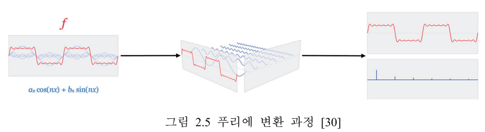 빨간색이 원 신호, 파란색의 여러 주기 함수를 이용해 각 영역을 분해